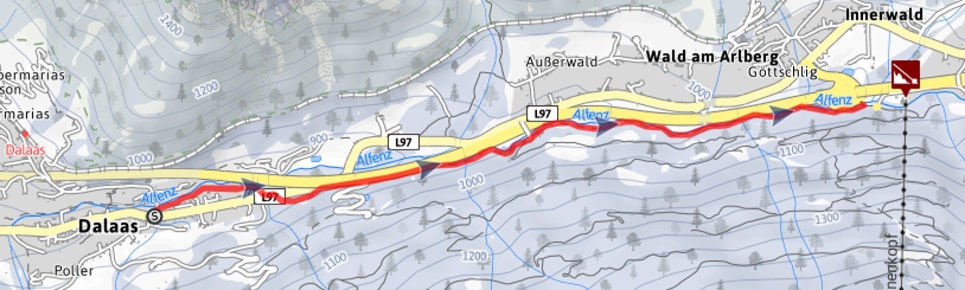 Nordic-Sportler werden im Klostertal ihre helle Freude in der Spur finden. Fünf unterschiedliche Loipen mit rund 18 km (einfache Länge) verlaufen durch das Klostertal. Von Dalaas startet die Rundloipe "Alfenz", die Langläufer bis nach Wald am Arlberg führt. Der Einstieg liegt gegenüber dem Kristbergsaal in Dalaas, wo auch Parkplätze zur Verfügung stehen. Die Spur führt auf 8,4 km überwiegend am Bachverlauf der Alfenz entlang bis zur Talstation der Sonnenkopfbahn. Wer keine eigene Langlauf-Ausrüstung besitzt, der kann diese hier ausleihen. Von der Sonnenkopfbahn ist der Anschluss zur Loipe "Klösterle" möglich, die weitere 8 km Loipe bietet. Als Einkehrschwung liegt die beliebte Après-Ski-Hütte "Kelo-Bar" auf dem Weg.