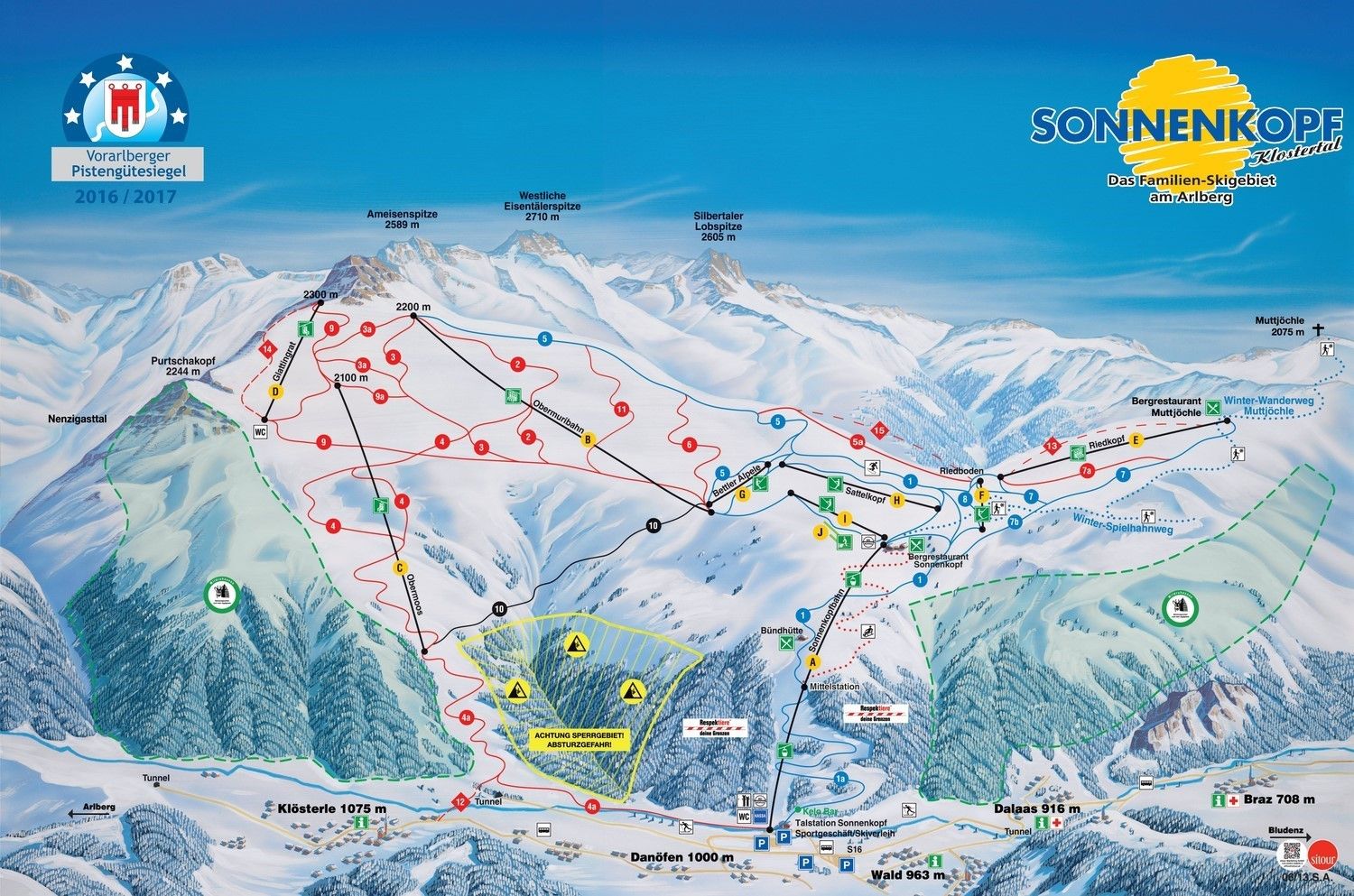 Das Klostertal bietet mit seinem üppigen Naturschnee im Winter jede Menge Freizeitaktivitäten, von Schneeschuhwanderungen am Sonnenkopf bis zum exotischen Lamatrekking. Oberhalb von Dalaas liegt das Skigebiet "Sonnenkopf", wo 31 km Familienpisten, Wanderwege und eine Rodelbahn auf aktive Wintersportler warten. Zudem bedient der Paluda-Schlepplift direkt in Dalaas eine kinderfreundliche Familienabfahrt.