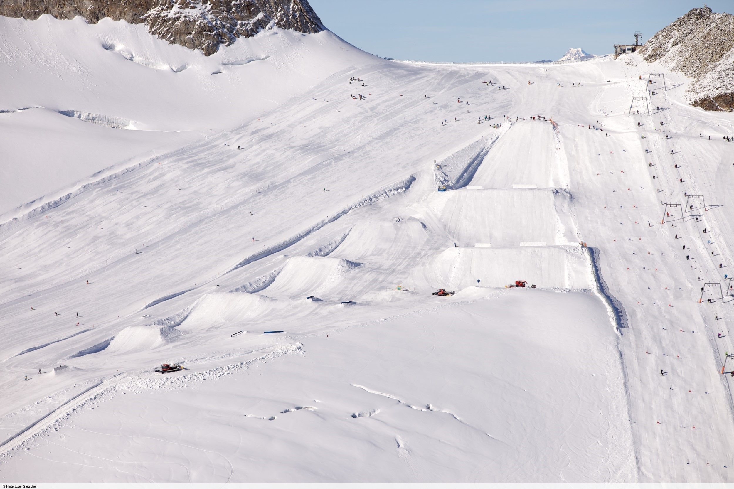 Das beinahe ganzjährige Freestyle-Vergnügen am Hintertuxer Gletscher kann sich mit Familienpark und Betterpark wirklich sehen lassen.